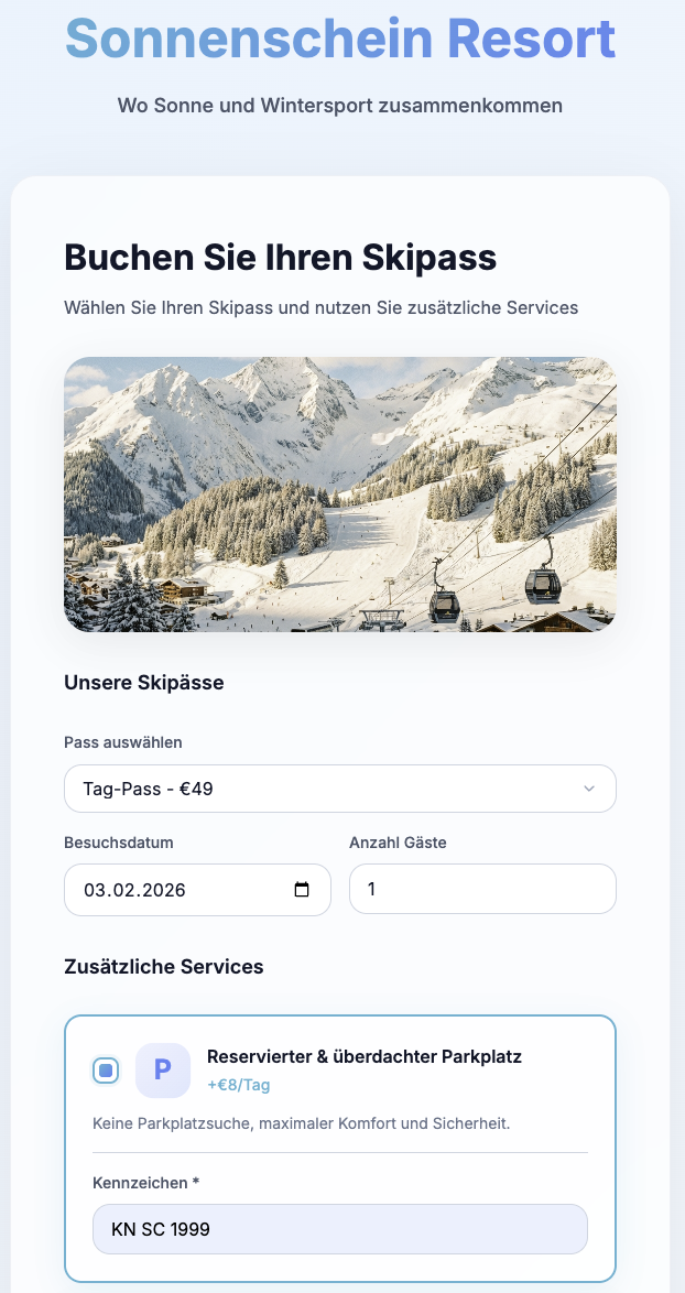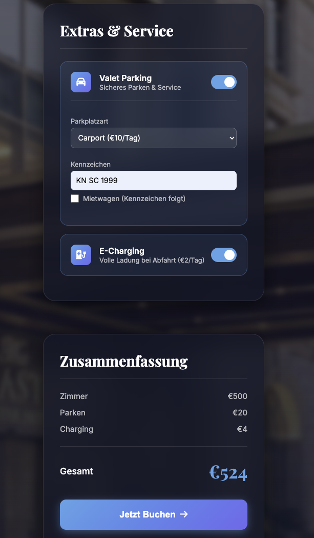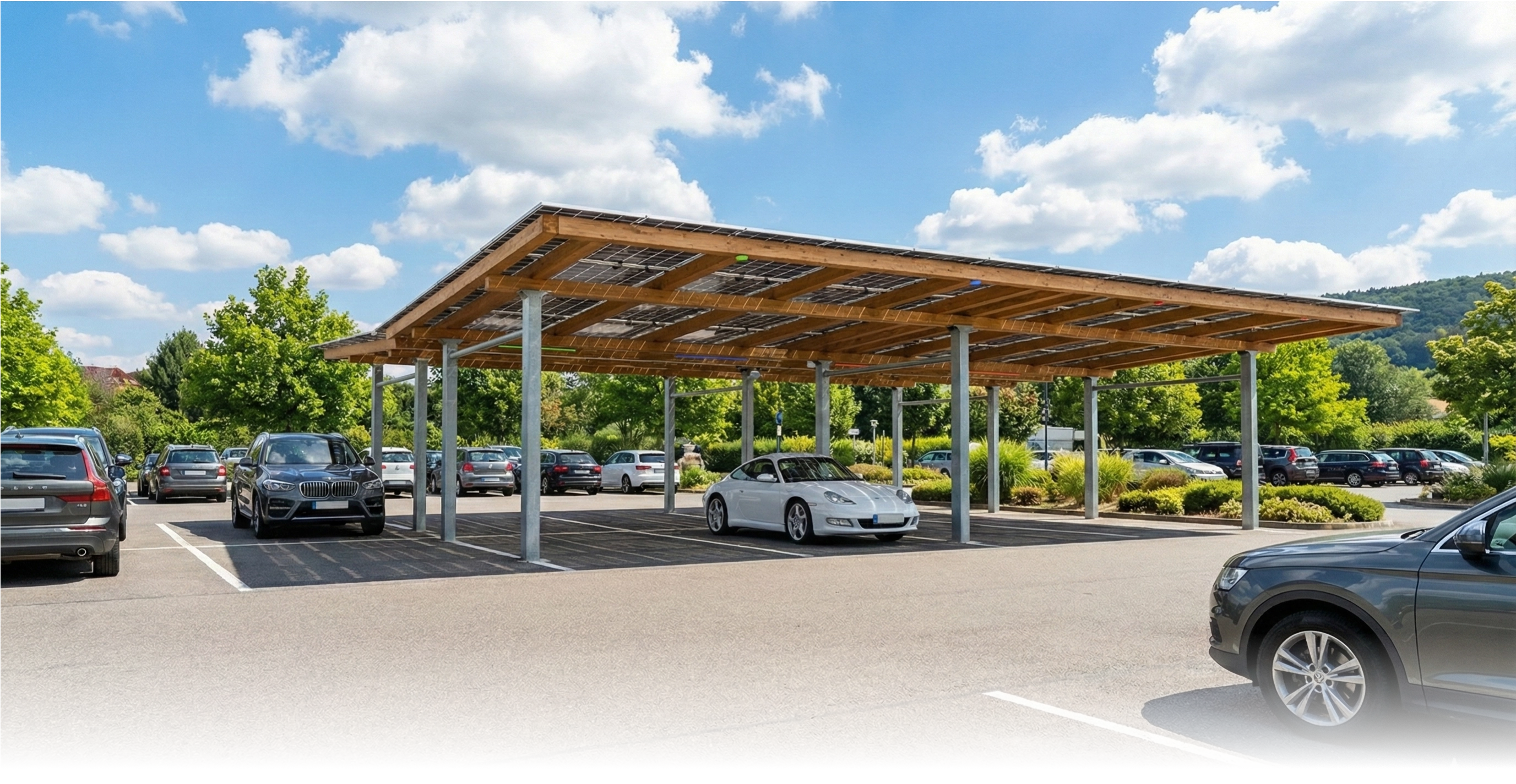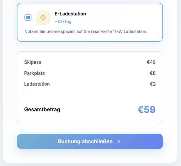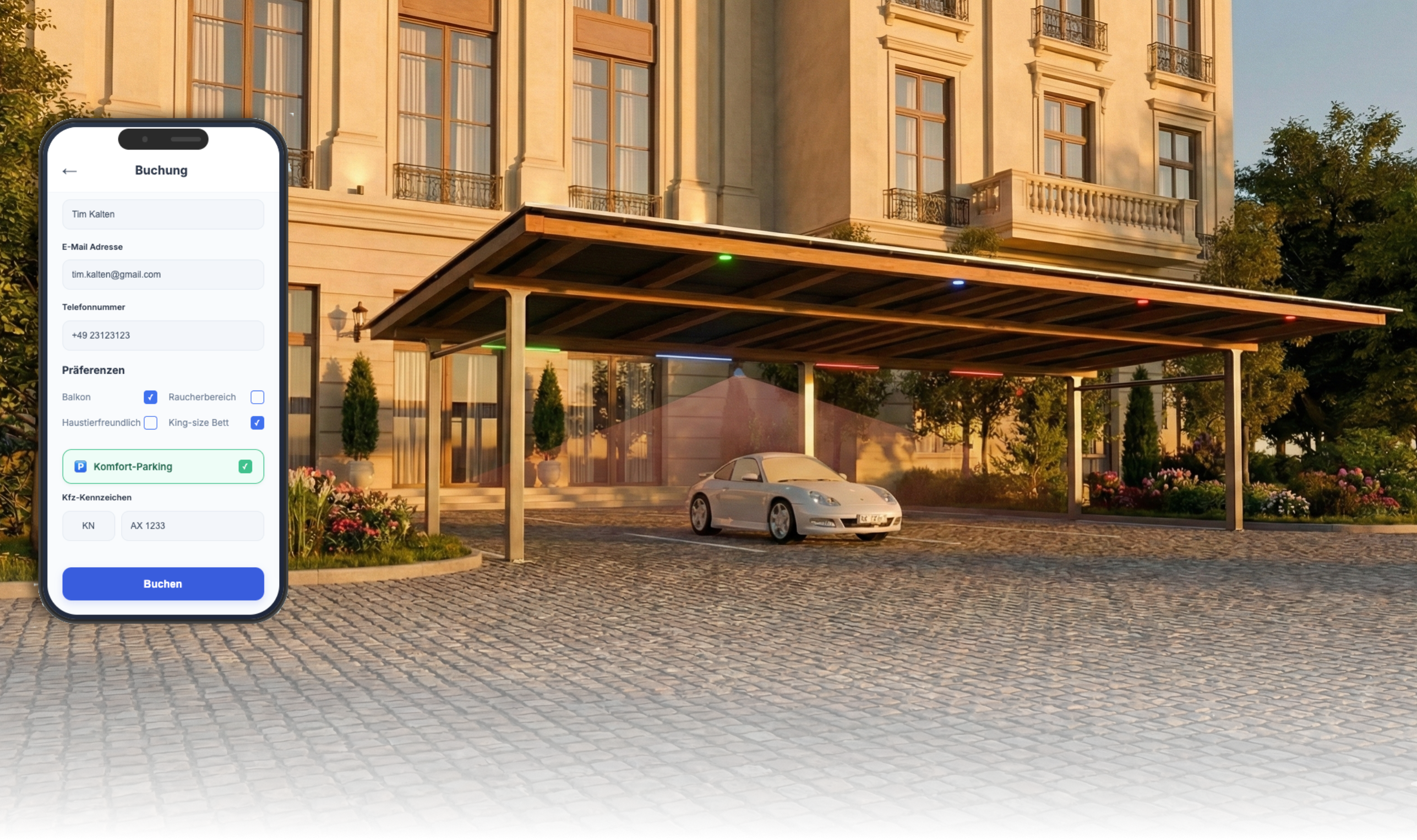 "Parkplatz-PV und intelligente Softwarelösung zur Reservierung von Komfort-Parkflächen und Ladesäulen. Ideal für Hotels, Tourismusbetriebe und alle sonstigen Unternehmen bei denen Erholung, Komfort und Innovation im Vordergrund steht.